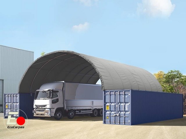 Cubierta entre contenedores 10×12, PVC 2300 IGNIFUGA Gris