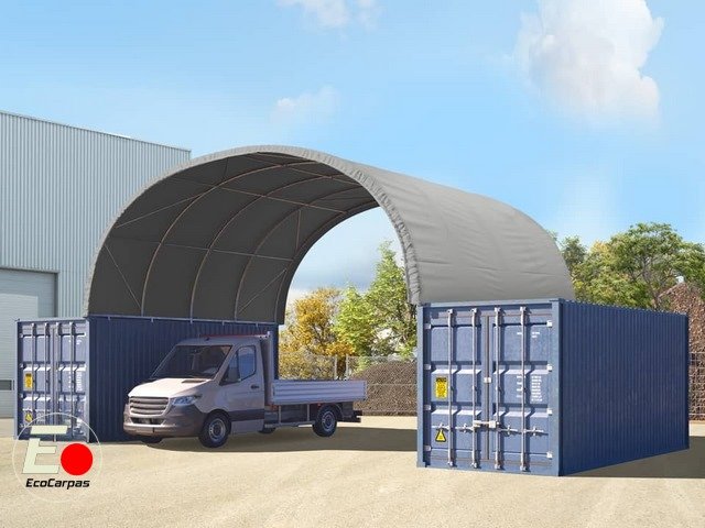 Cubierta entre contenedores 8×6, PVC 2300 IGNIFUGA Gris