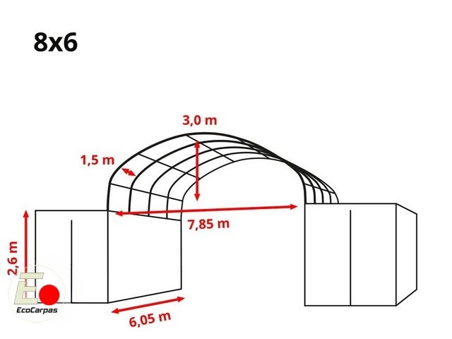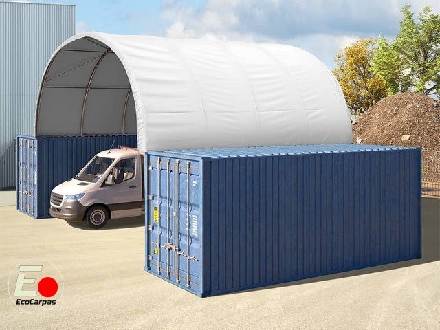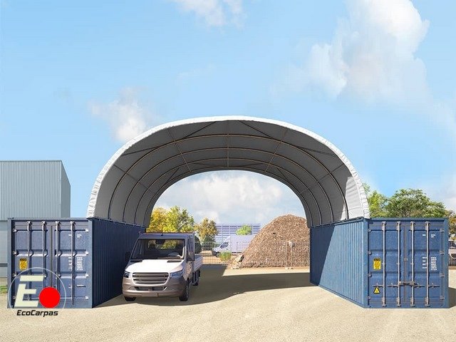 Cubierta entre contenedores 8×6, PVC 2300 IGNIFUGA Blanca
