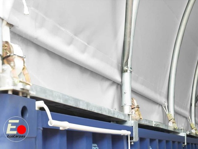 Sé el primero en valorar “Cubierta entre contenedores 8×6, PVC 2300 IGNIFUGA Blanca”